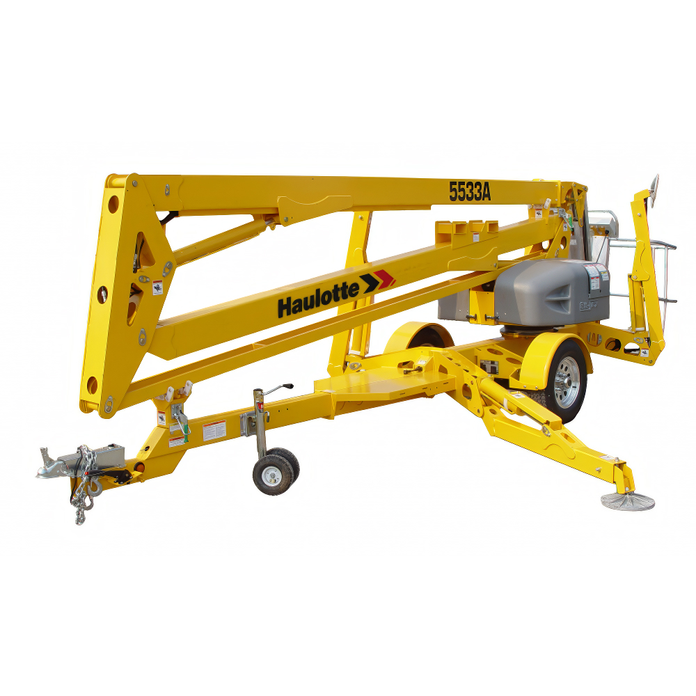 The 5533 A by Haulotte is an electric, towable articulating boom lift engineered for applications requiring significant height and reach in confined or environmentally sensitive areas. It's designed to be easily towed, offering an impressive combination of reach, capacity, and environmental friendliness for both indoor and outdoor use.